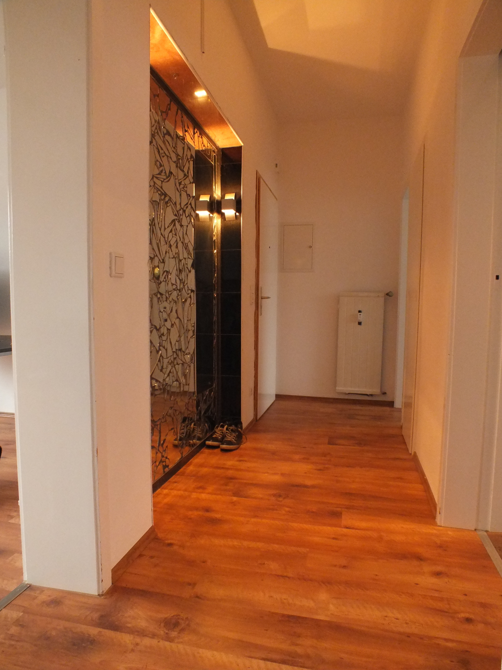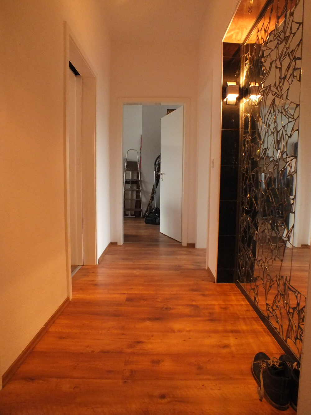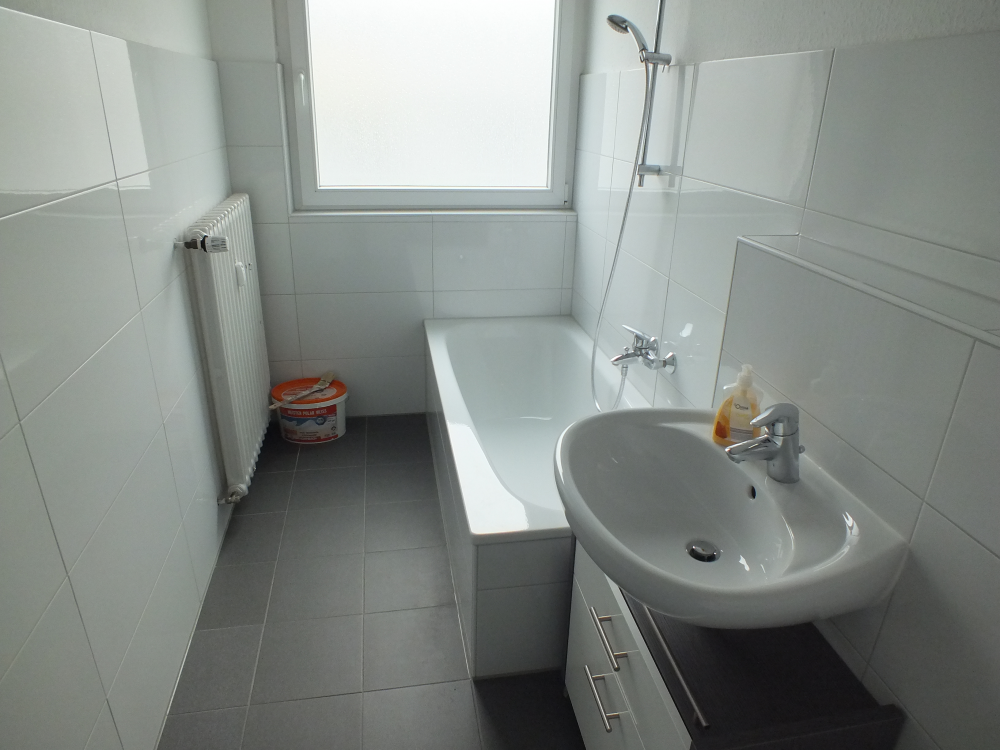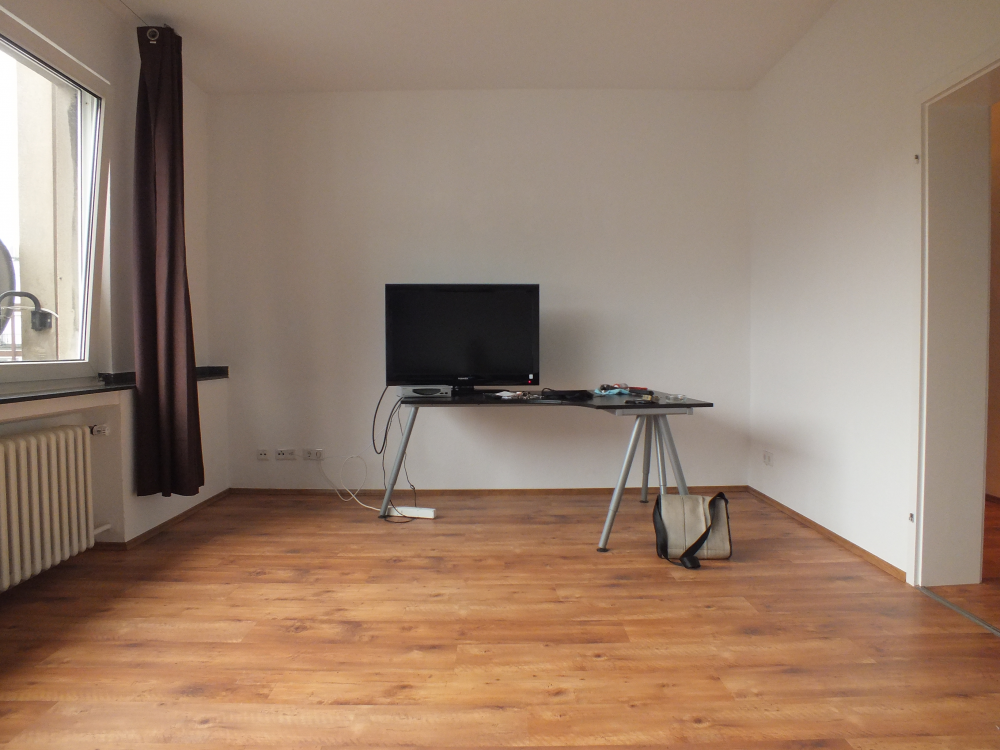Moderne, helle Wohnung in gepflegter, zentraler Lage. Die Wohnung verfügt über 2 Zimmer und wurde 2011 saniert und renoviert. In dem Zuge wurde ein neues Badezimmer installiert und ein pflegeleichter Laminatboden verlegt. Die Wohnung verfügt über eine gute Raumaufteilung. Über die Diele sind alle Zimmer begehbar. Ein außergewöhnlicher Spiegel im Flur vermittelt Kreativität und Individualität. Ein kleiner Abstellraum im Flur läßt die Putzutensilien schnell verstauen. Das Badezimmer verfügt über eine Badewanne und Fenster. Es wurden großflächige, weiß glänzende Fliesen verlegt. Die Küche bietet genug Raum für einen Tisch und Stühle. Die Warmwasserversorgung läuft über einen Durchlauferhiter in Badezimmer, so dass in der Küche kein Untertischgerät benötigt wird. Vom geräumigen Wohnzimmer aus erreichen Sie den ca. 6 m² großen (Süd)-Balkon. Die Wohnung verfügt über eine SAT-Schüssel, welche Vermieterseitig gestellt wird.