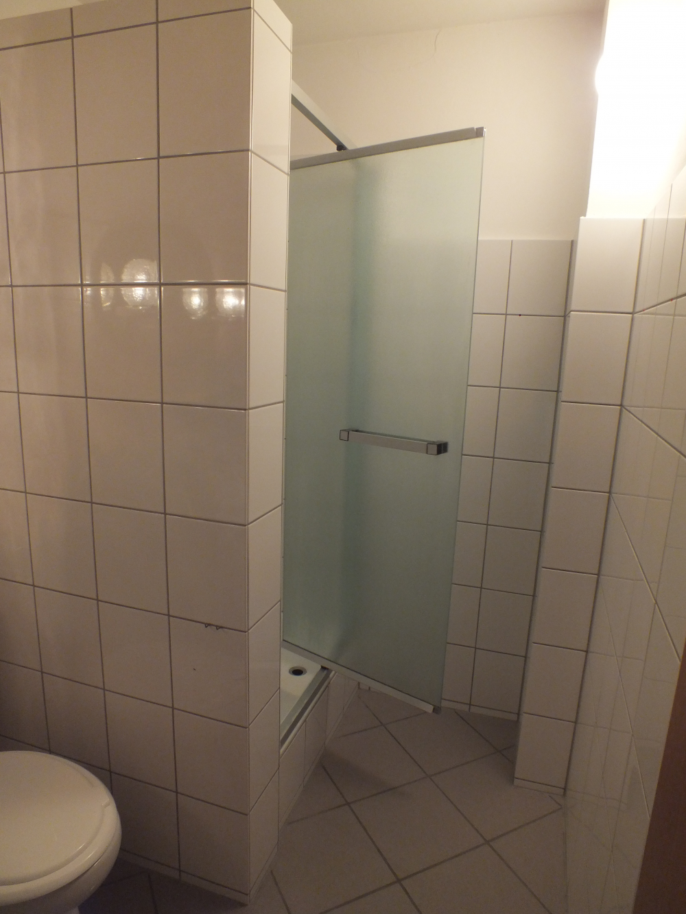 Der Wohn- und Schlafbereich verfügt über einen Parkettboden. Badezimmer und Gäste-WC sind modern weiß gefliest ( H 25cm x B 33cm ). Der Küchenboden ist mit braunen Fliesen (7,5x7,5cm) ausgestattet, der Fliesenspiegel neutral weiß. Im Flur des Schlafbereiches befindet sich ein Einbauschrank. Alle Fenster verfügen praktischerweise über Rolläden. Die Wohnräume sind gepflegt und mit wenig Aufwand den eigenen Vorstellungen angepasst. Ein Kellerraum mit ca. 8 m² gehört zur Wohnung. Die Waschmaschine und Trockner findet Platz im Gemeinschaftskeller. Eine Garage ( 3 m hoch, 6 m lang ) kann für 50,00€ im Monat angemietet werden. Aufgrund der Übergröße bleibt genügend Raum für Ihre Fahrräder etc.