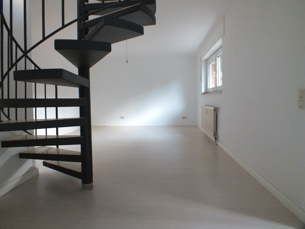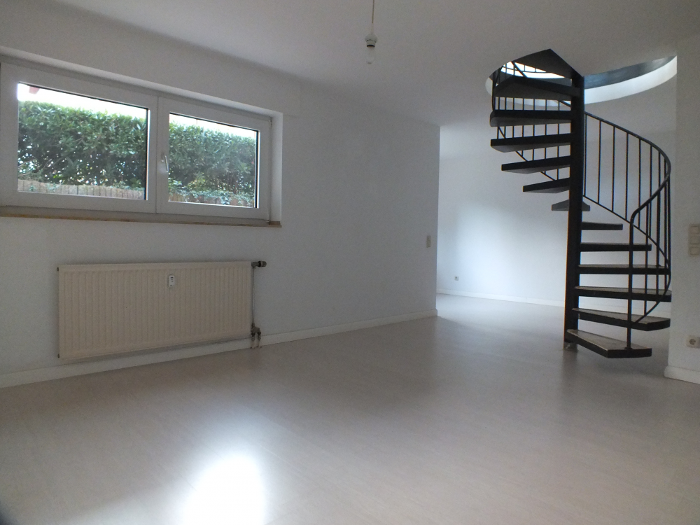 Tolle Maisonette-Wohnung in sehr gepflegter und ruhiger Lage von Willich. Die Wohnung ist eine von zwei Wohnungen im Hochpaterre und Souterrain eines 5-Parteienhauses. Sie betreten die Wohnung über einen kleinen Flur. Von hier ist das Gäste-WC erreichbar. Auf dieser Ebene (Hochpaterre) kann das Wohnzimmer und die offene Küche eingerichtet werden. Der überdachte Balkon ist vom Wohnzimmer aus begehbar. Eine Wendeltreppe führt in die Schlafebene mit Badezimmer inkl. Badewanne. Eine Duschwand ist bereits installiert. Auf der unteren Ebene läßt sich bei Bedarf ein Arbeitsbereich einrichten. Die Wohnung verfügt über eine sehr gute Aufteilung und ist vermittelt ein behagliches Gefühl durch viele Fensterflächen. Alle Fenster verfügen über Rolläden, teils sogar über Lamellenvorhäge, die auf Wunsch übernommen werden können.