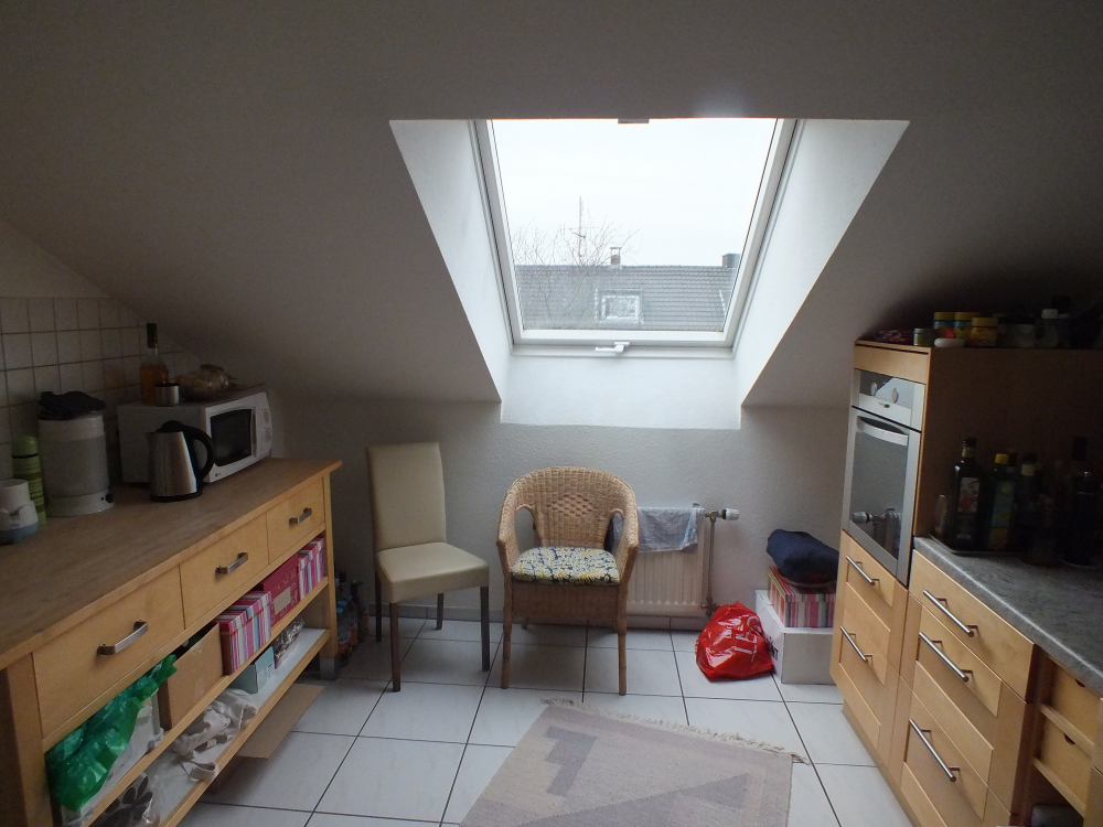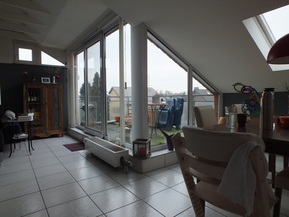 Das Haus liegt in einer verkehrsberuhigten Zone von Willich-Anrath. Die umliegende Bebauung ist gemischt zwischen Einfamilien- und Mehrfamilienhäusern. Die Wohnung befindet sich im ausgebauten Dachgeschoss eines gepflegten 5-Parteienhaus. Sie bietet 3 großzügige, helle Zimmer und eine Terrasse. Die Decken-Balkentechnik vermittelt ein offenes Wohngefühl & Gemütlichkeit. Der schöne Kamin (inkl. Besteck) trägt seinen Teil dazu bei und hilft Heizkosten zu sparen. Die Räumlichkeiten sind geeignet für ein Paar oder eine kleine Familie mit einem Kind, je nach Platzbedarf. Es stehen zwei weitere Zimmer zur Verfügung. Eines der beiden Zimmer dient derzeit als Arbeits- und Ankleidezimmer. Das Badezimmer bietet zwei Handwaschbecken, Badewanne und eine Dusche. Das WC ist separiert. Schlaf- und Wohnbereich sind über die ebenfalls großzügige Diele separiert. Viele Fensterfronten sorgen für ausreichend Licht.