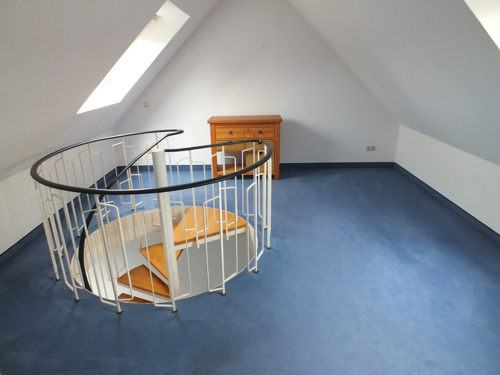 Diese Wohnung befindet sich in einer ruhigen Spielstraße; zentral in Willich. Sie liegt im 2. Obergeschoss zzgl. Dachstudio eines gepflegten und gut organisierten 6-Parteienhauses. Über den Wohnungseingang gelangt man in einen Flur, von dem das Badezimmer und ein Schlafzimmer mit kleinem Balkon begehbar ist. Dieser Bereich ist mit einem Laminatboden versehen. Das Badezimmer ist ausgestattet mit einer Dusche, Handwaschbecken und WC. Es hat eine angenehme Größe. Die Waschmaschine muss nicht hier platziert werden, hierfür steht der Wasch- und Trockenraum im Keller zur Verfügung. Das Schlafzimmer ist durch die bodentiefen Fenster mit Zutritt zum Balkon lichtdurchflutet. Über den Flur gelangt man in den großzügigen Wohn- und Essraum. Von hier gelangt man auf den großen Balkon ( ca. 8 m² ) mit Blick ins Grüne. Hier können Sie Ihren Feierabend perfekt genießen. Vor dem Ausgang zum Balkon befindet sich auf der linken Seite die separierte Küche. Die Wendeltreppe in den ausgebauten Spitzboden befindet sich mittig im Wohnzimmer. Durch die mittige Lage der Treppe läßt sich einfach ein Wohn- und Essbereich gestalten. Im oberen Bereich der Wohnung steht ein abgeschlossener Raum als Schlafzimmer sowie der Vorraum als bsp.-weise Arbeits-/Ankleidezimmer zur Verfügung. Der eigene Kellerraum mit ca. 6 m² bietet zusätzlichen Stauraum. Die Waschmaschine und der Trockner kann im gemeinschaftlich genutzten Wasch- und Trockenraum angeschlossen werden. Seperate Wasserzähler sowie abschließbare Stromzufuhr sorgen für eine detaillierte Abrechnung. Optional besteht die Möglichkeit einen Tiefgaragenstellplatz (mit direktem Zugang in den Hausflur) oder/und einen Außenstellplatz anzumieten.
