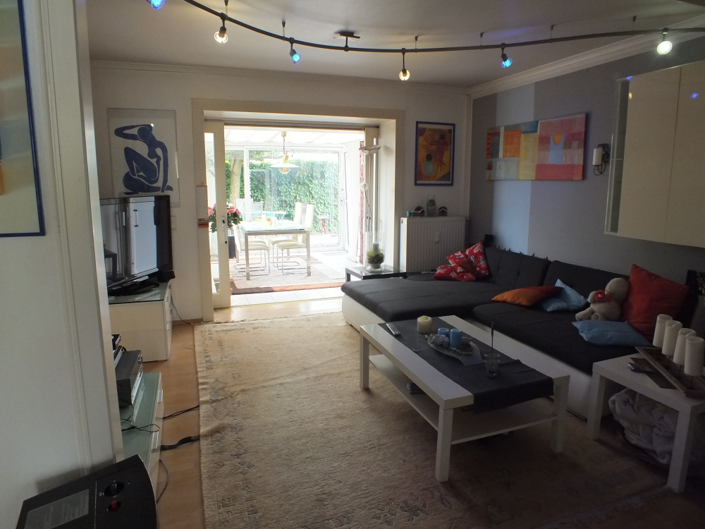 Diese Erdgeschosswohnung befindet sich - ruhig gelegen - im Gewerbe-/Wohngebiet in Brüggen-Bracht im 2-Parteien-Haus. Geeignet ist sie vorrangig für ein Paar oder einen Single. Die Wohnung bietet eine Wohnfläche von 73,4 m². Wohn- und Schlafzimmer sind geräumig geschnitten. In einem der beiden Zimmer läßt sich problemlos eine Computer-/Hobbyecke einrichten. Das Badezimmer ist komplett weiß gefliest und lädt mit Badewanne und Natursteinablage mit integrierter Flaschenkühlung zur Entspannung ein. Der große Spiegelschrank kann auf Wunsch übernommen werden. Im Flurbereich des Hauseinganges steht ein Gäste-WC zur Verfügung. Zentraler Raum der Wohnung ist das Wohnzimmer zzgl. Anbau. Von diesen beiden Zimmern sind Küche, Bad und das Schlafzimmer begehbar, d.h. keine Durchgangszimmer. Im Jahr 1985 wurde die Wohnung um den Anbau/Wintergarten ergänzt. In dem Zuge wurde eine schöne Terrasse ( ca. 55 m² ) angelegt. Ein besonderes Highlight ist der "natürliche Sonnenschirm", er spendet an warmen Tagen angenehme Kühle und sorgt im Anbaubereich für angenehme Temperaturen. Von der Terrasse hat man einen eigenen Zugang zum Kellerbereich sowie zur Hausseite. Ein eigener Kellerraum und ein Einbauschrank unter der Kellertreppe gehört zur Wohnung. Die Waschküche kann gemeinschaftlich genutzt werden. Eine Garage (mit direktem Zugang in die Wohnung), drei Stellplätze und der schöne Vorgarten runden das Angebot ab.