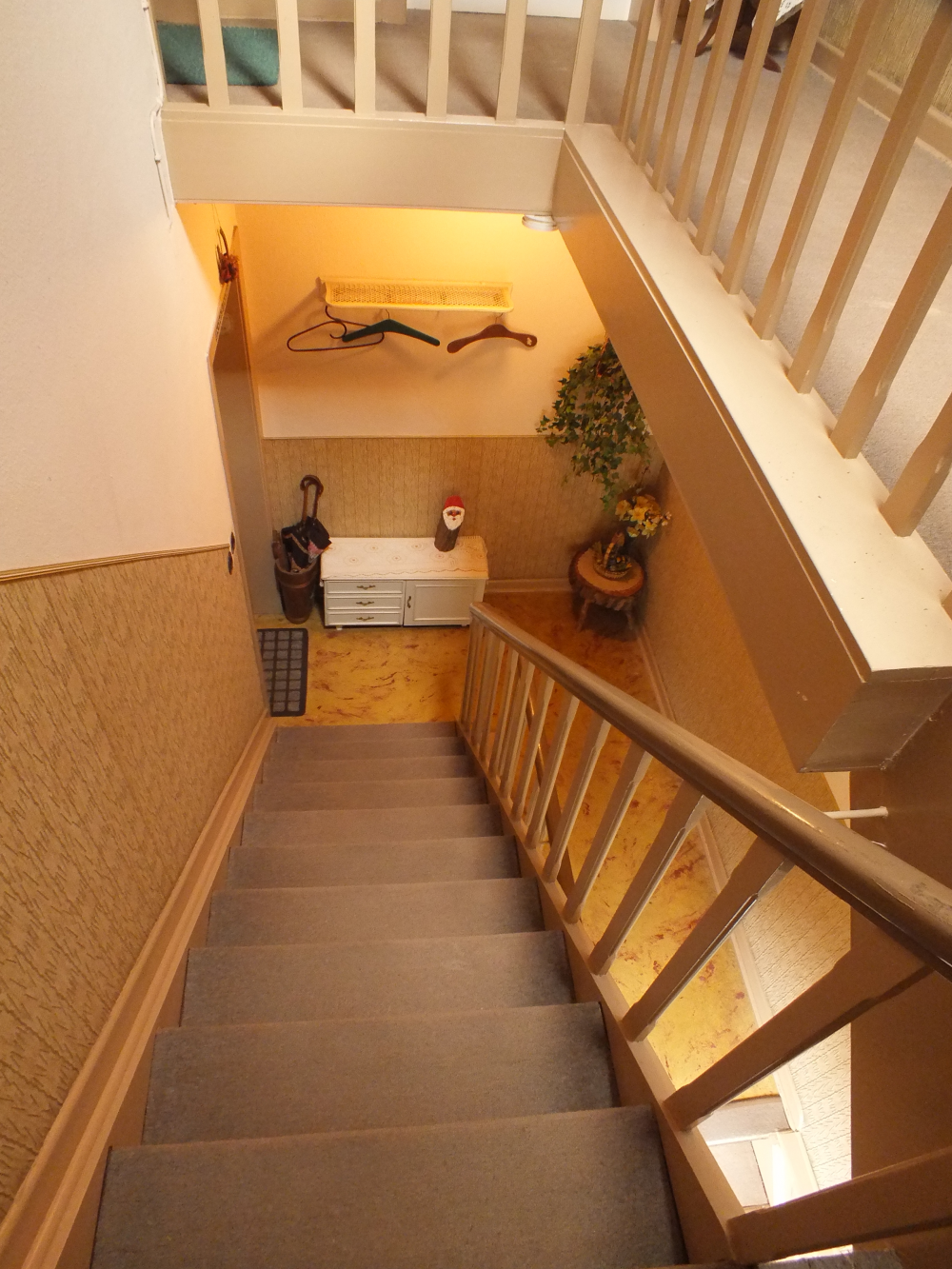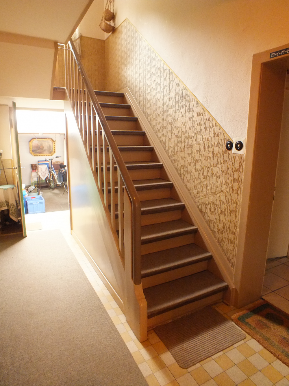 Hier finden drei Wohnparteien Platz. Es befindet sich eine Zwei-Zimmer-Wohnung im Erdgeschoss, eine weitere Zwei-Zimmer-Wohnung im Obergeschoss und eine weitere Wohnung im ausgebauten Dachgeschoss mit Wohn-/Esszimmer, Duschbad und zwei weiteren Zimmern. Alle Wohnungen haben einen seperaten Eingang über das Treppenhaus. Die Energieversorgung im Haus ausgelegt auf 3 Parteien. Das Erdgeschoss wurde im hinteren Bereich um einen überdachten Anbau ergänzt. Von hier ist die Außenterrasse ( 6 x 5 m ) begehbar. Die Wohnungen verfügen über Freisprecheinrichtungen und Türöffner. Im Jahr 2000 wurde eine Dämmung des Daches vorgenommen.