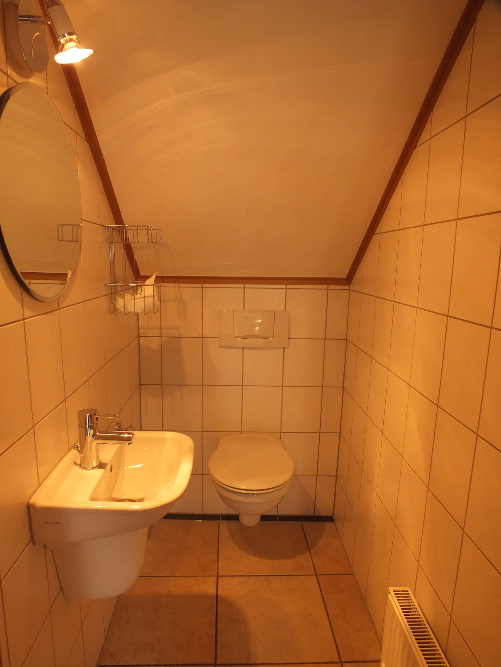 - Gäste-WC mit Handwaschbecken und Spiegel