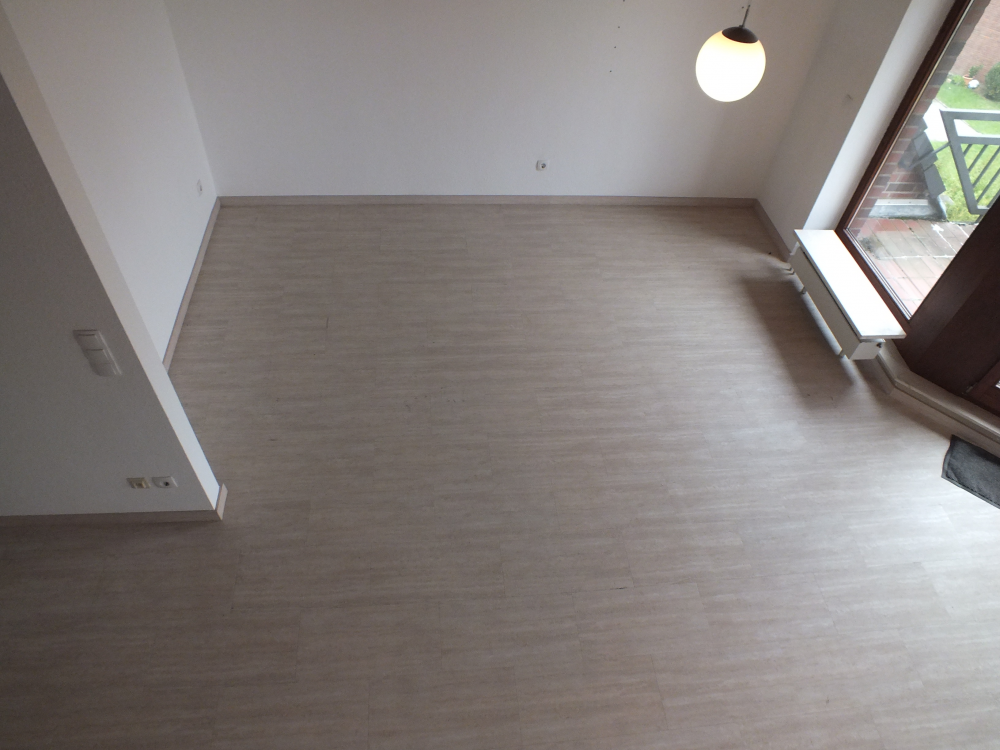 Die Wohnung wurde mit einem Vinyl-Designboden in beige ausgestattet.