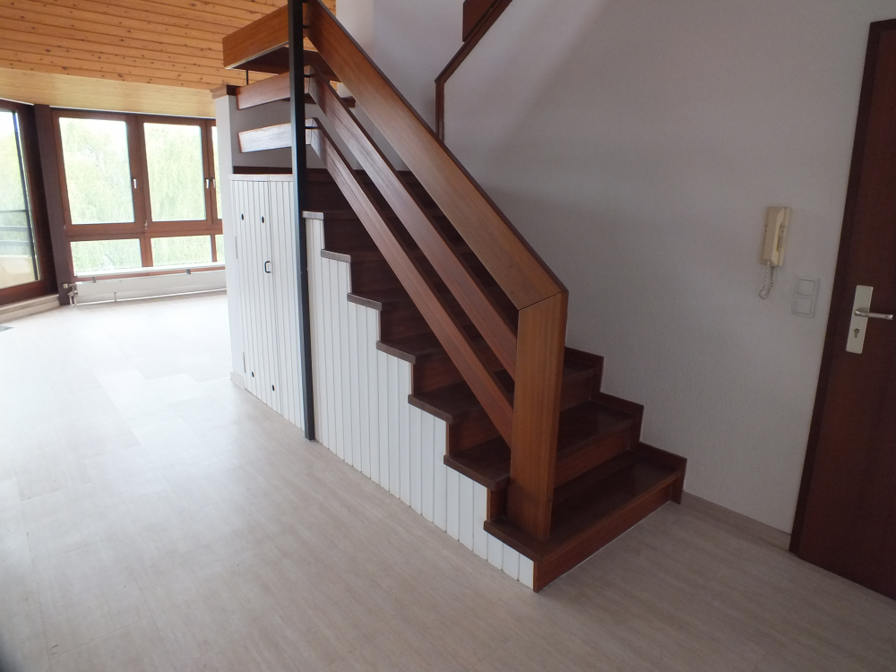 Der offene Stil verleiht dieser Wohnung Ihren besonderen Charakter. Die Wohnung besteht aus einem großzügigen Wohn- und Esszimmer mit Verbindung zum Balkon, einer seperaten Küche, einem Schlafzimmer sowie einem Wannenbad und separtiertes WC. Das Badezimmer und WC wurden im Jahr 2011 modernisiert. Unter der Treppe Richtung Dachstudio wurde praktischerweise eine Abstellmöglichkeit integriert.