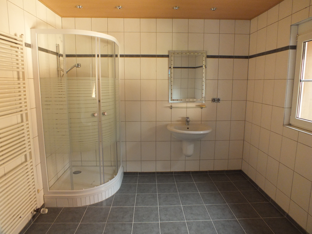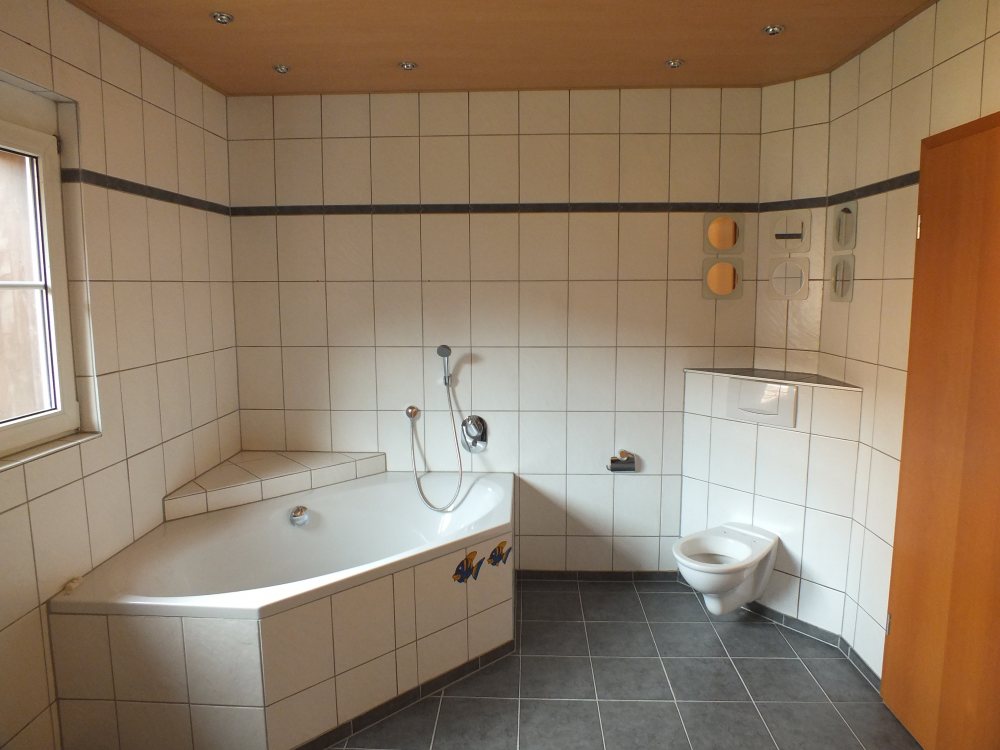 - Modernes, großes Tageslichtbad mit Badewanne, Dusche, WC, Handwaschbecken, Spiegel, Handtuchheizung sowie Fussbodenheizung