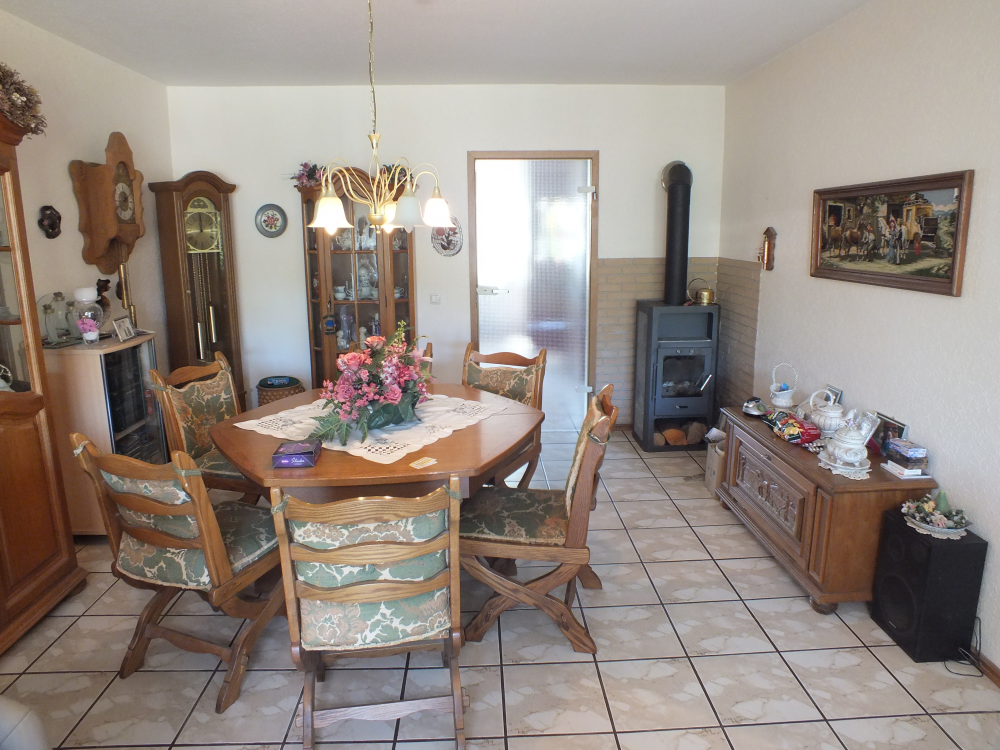 Sowohl in der Erdgeschosswohnung als auch in der Obergeschosswohnung ist ein Kaminofen installiert. Die Obergeschosswohnung verfügt über einen seperaten Eingang. Im Erdgeschoss steht ein Flur mit ca. 13 m² Fläche zur Verfügung. Von hier erreicht man über das Treppenhaus den Wohnungseingang im Obergeschoss sowie den Kellerbereich.
