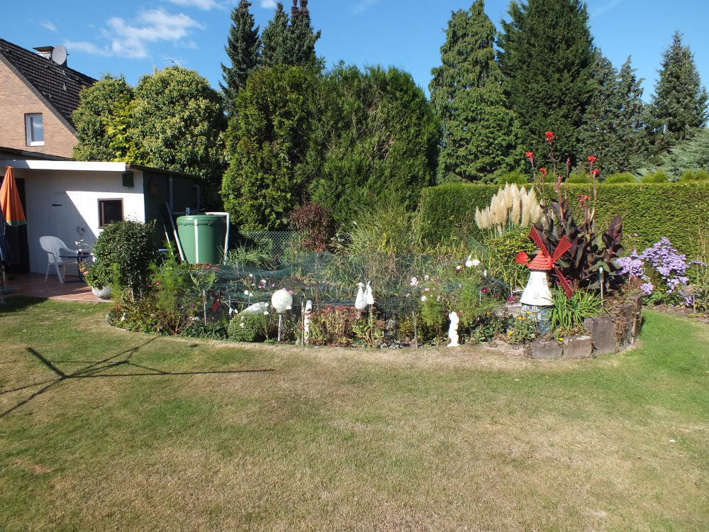 - Garten inkl. Pavillion und Gartenteich sowie Gewächshaus