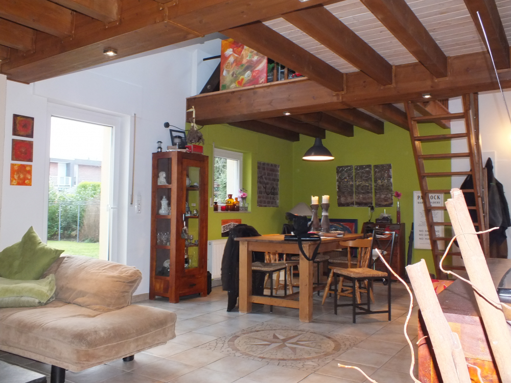 Single-/Paarwohnung in ruhiger Lage von Grefrath-Oedt mit Terrasse und schönem Garten. Die Wohnung liegt im rückliegenden Anbau eines Geschäftshauses. Das Haupthaus ist von ca. 1900, der Anbaubereich wurde zuvor als großer Schuppen genutzt. Der Ausbau zu wohnlichen Zwecken wurde im Jahr 2011 abgeschlossen. Die Vereinigung alter und neuer Stilelemente sowie die gemütliche Holzbalkentechnik und die freie Bauweise mit Blick in die Empore verleiht der Wohnung Ihren besonderen Charme.