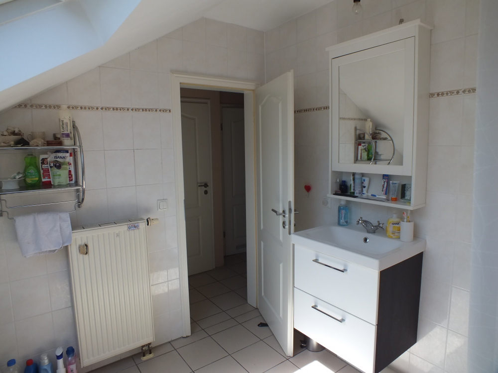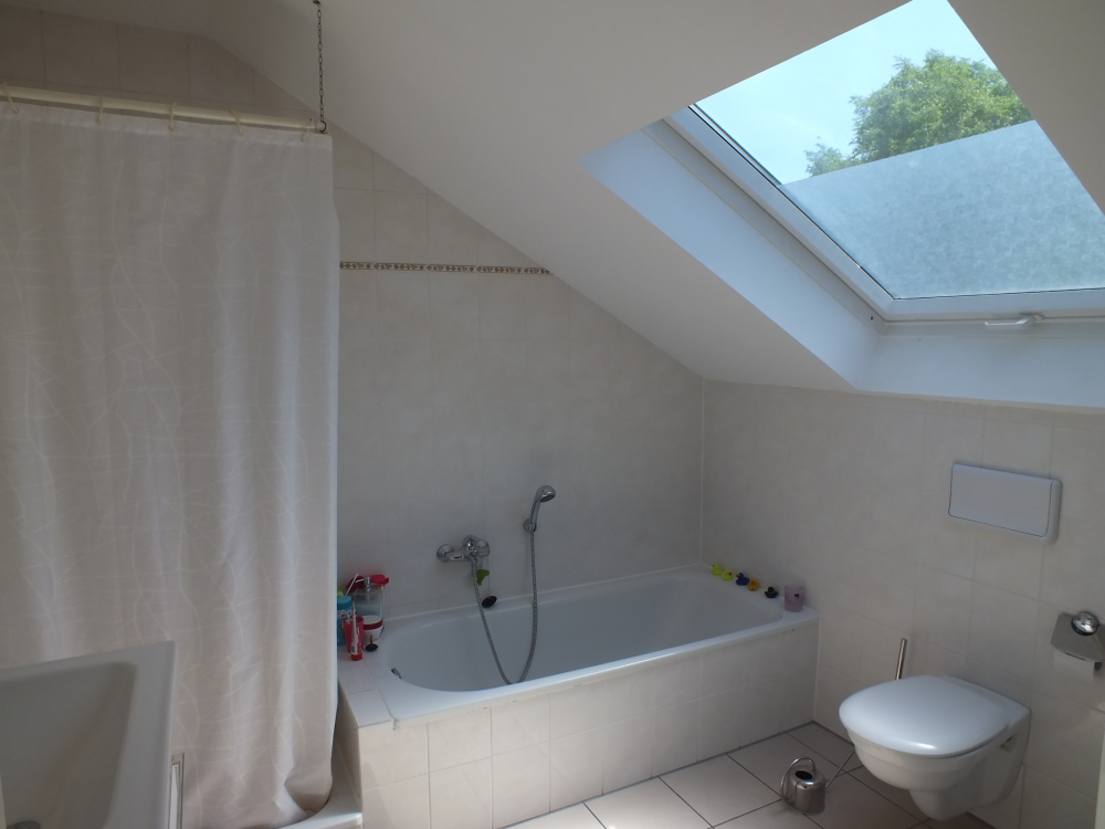 Das Tageslichtbad ist deckenhoch hell gefliest und verfügt über eine Badewanne und eine Dusche. Eine neue Waschmaschine im Badezimmer steht auch zu Ihrer Verfügung.