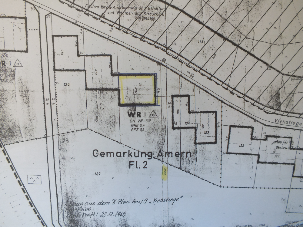Das Gesamtgrundstück misst 3.559 m². Lt. Bebauungsplan können bei einer Grundflächenzahl von 0,4 insgesamt ca. 1.423 m² bebaut werden, die Fläche aller Vollgeschosse darf entsprechend bei einer Geschossflächenzahl von 0,5 bei 1.779 m² liegen. Der Garten des Grundstückes hat Westausrichtung. Hier können Sie Ihre Träume Wirklichkeit werden lassen...