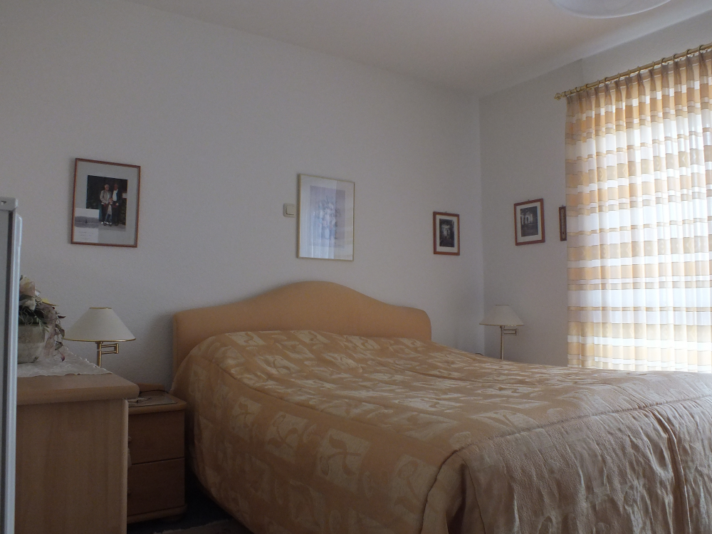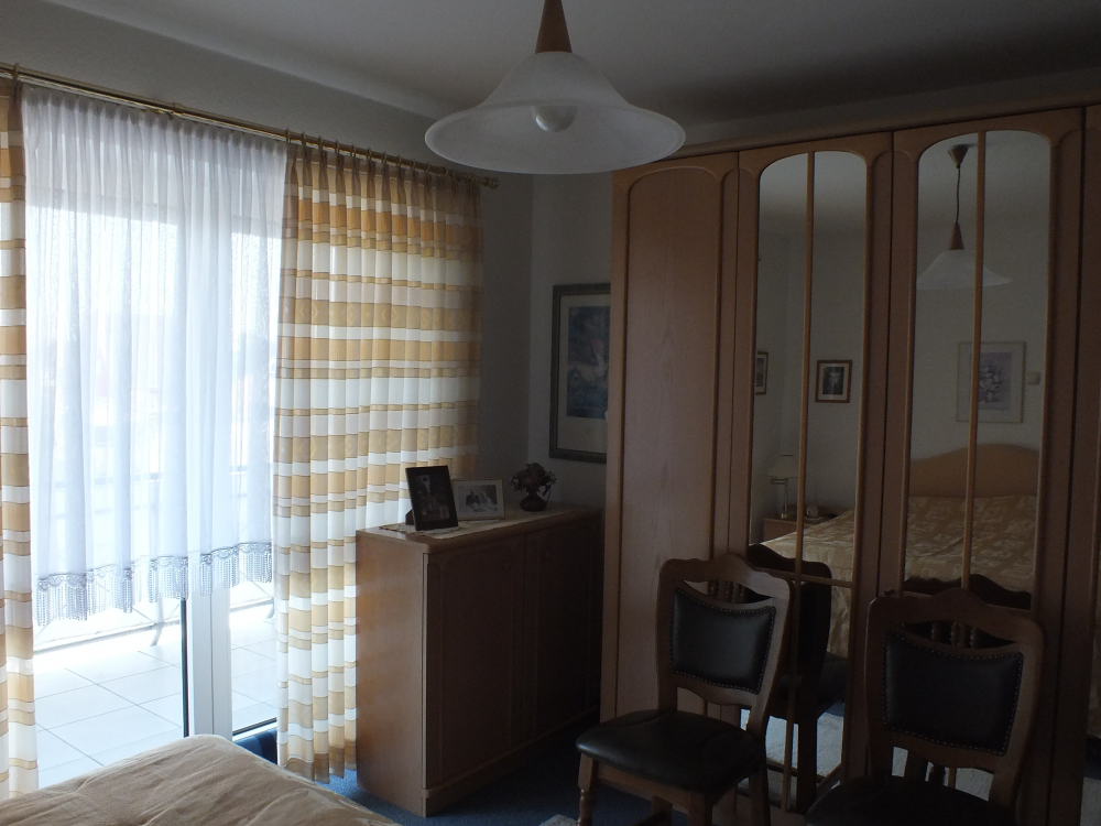 Hier und in der Diele liegt pflegeleichter Terrakottaboden. Alle Zimmer haben Ganzglastüren, teilsweise meliert. In Kombination mit den große Fensterfronten ist diese Wohnung sehr hell und freundlich. Der Balkon ist gefliest und erstreckt sich über die gesamte Breite des Hauses.
