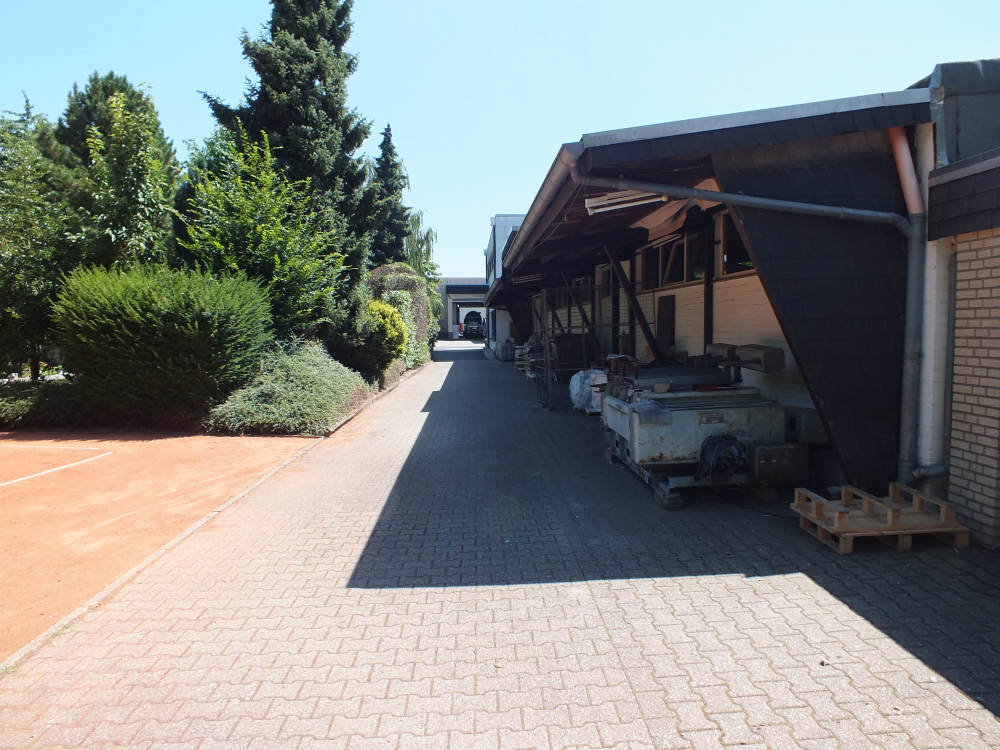 Das Grundstück umfasst eine Größe von 2600 qm. Dem neuen Eigentümer stehen zwei Gewerbehallen mit insgesamt 768 qm Fläche, ein Parkplatz mit acht PKW-Stellplätzen sowie ein Bungalow in Massivbauweise, eine Doppelgarage, ein Tennisplatz sowie eine uneinsehbare Gartenfläche zur Verfügung.