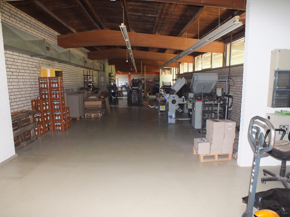 Obergeschoss. Die Fläche verteilt sich auf insgesamt 468 qm. Der Bereich im Erdgeschoss bietet einen kleinen Empfangsbereich und einen Betriebsraum mit Durchgang zur Halle II. Im Obergeschoss befindet sich ein großer, gefliester Betriebsraum und Büroflächen. Alle Fenster verfügen über Isolierglas.