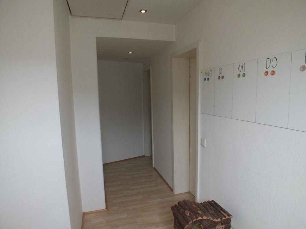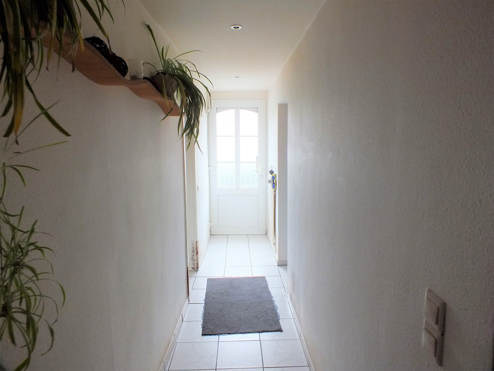 Vor dem Hauseingang steht eine kleine Fläche zur Verfügung. Hier könnte bei schönem Wetter ggfs. ein Tisch und Stühle sowie z.B. auch die Müllgefäße platziert werden.