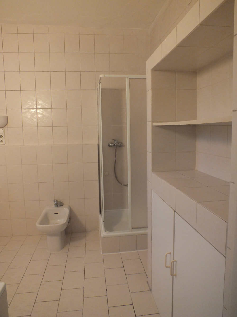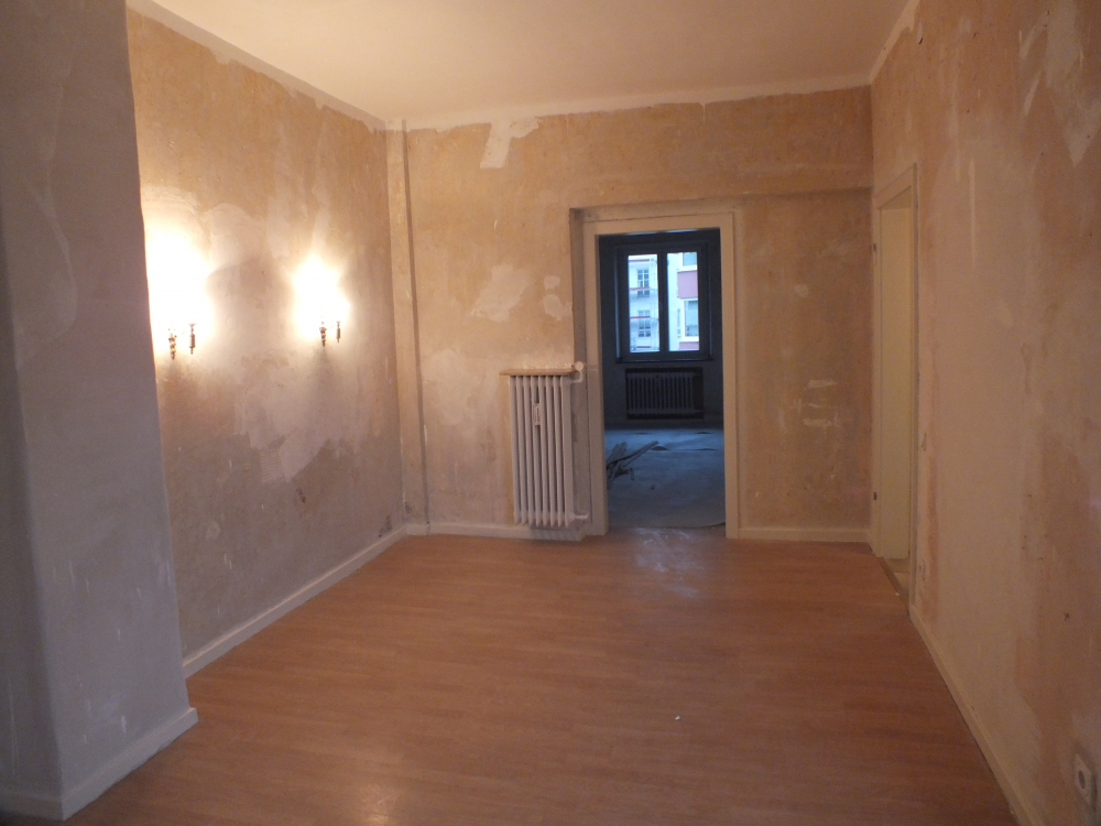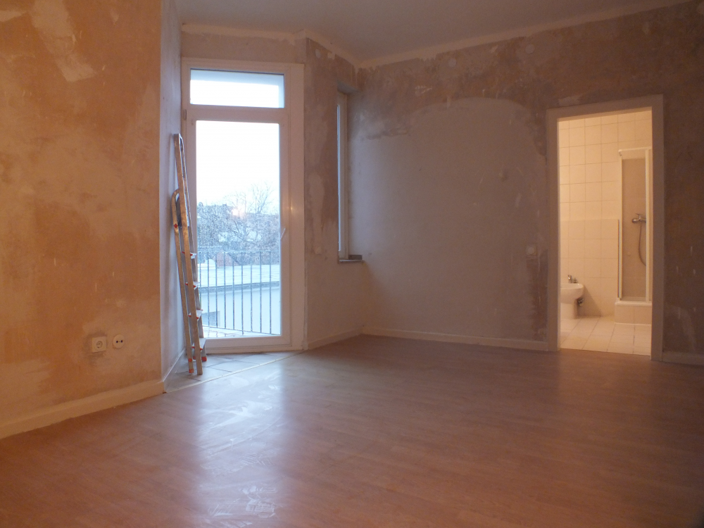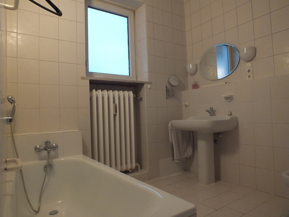 Die Wohnung wurde aktuell modernisiert, d.h. neue isoverglaste Kunststofffenster, die Wände wurden neu verputzt, alle Lackierarbeiten sind erledigt ( Türrahmen, Heizungen und Decken ), teils wurde neuer Boden gelegt. Der Flur- und Wohnbereich ist mit pflegeleichten beigen Fliesen ausgestattet. Im Schlafzimmer wurde Laminat gelegt. Das Badezimmer, welches über das Schlafzimmer begehbar ist, ist komplett weiß gefliest, verfügt über eine Dusche, Wanne, großes Waschbecken, Bidet und Einbauschrank. Das seperate WC ist vom Flur aus begehbar. Die Küche mit seperatem Abstellraum ist weiß gefliest, der Fliesenspiegel für die Küchenzeile ebenso. Das dritte Zimmer könnte idealerweise als Büro oder Ankleidezimmer genutzt werden. Das Wohnzimmer mit knapp 38 qm ist großzügig bemessen. Hier findet sich ein Kamin mit Kupferhaube inkl. allem nötigen Zubehör, vorwiegend als Deko. Die Decke ist in Holz verkleidet, kann bei Bedarf hell gestrichen werden. Der Balkon umfasst ca. 5 qm und kann vom Schlafzimmer sowie von der Küche aus betreten werden.