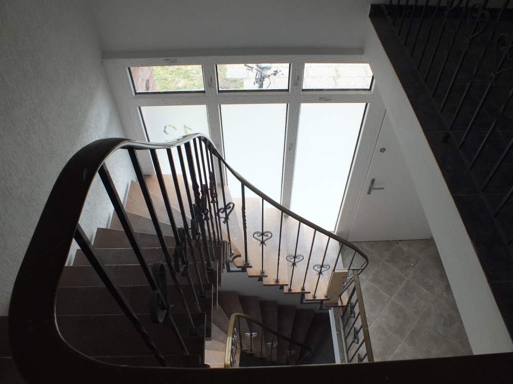 - Holztreppe mit Handlauf / Kelleraußentreppe gefliest