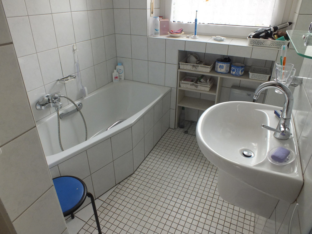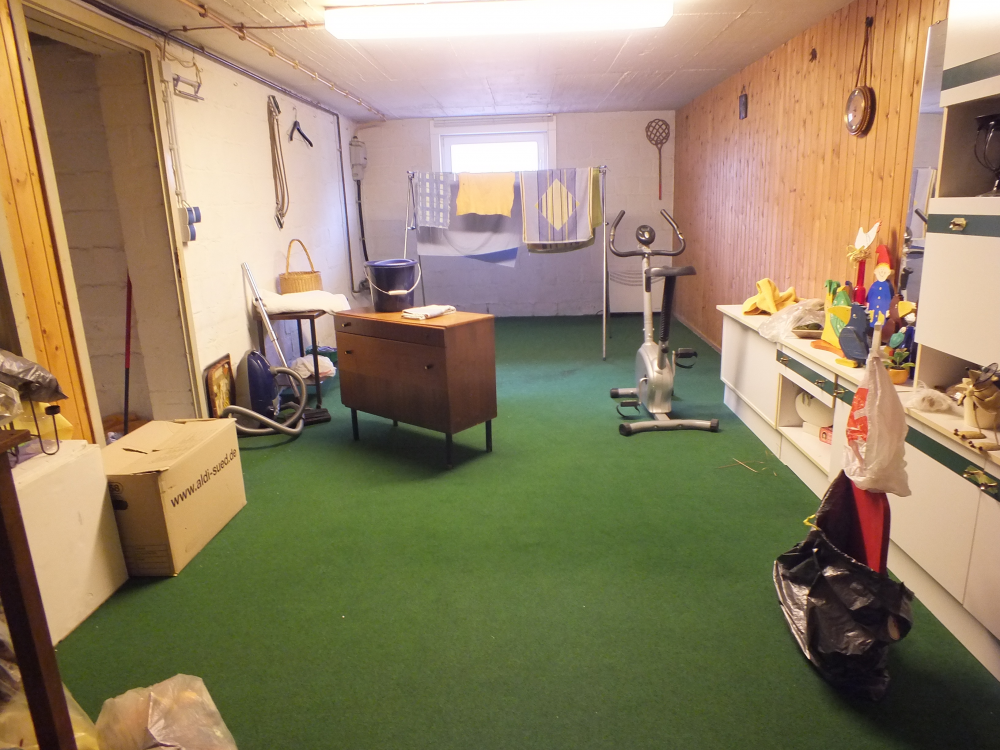 Beachten Sie gegebenenfalls, dass im Bereich der Boden- und Wandbeläge eine geschmacksbedingte Renovierung ansteht. Der Keller ist gänzlich gefliest.
