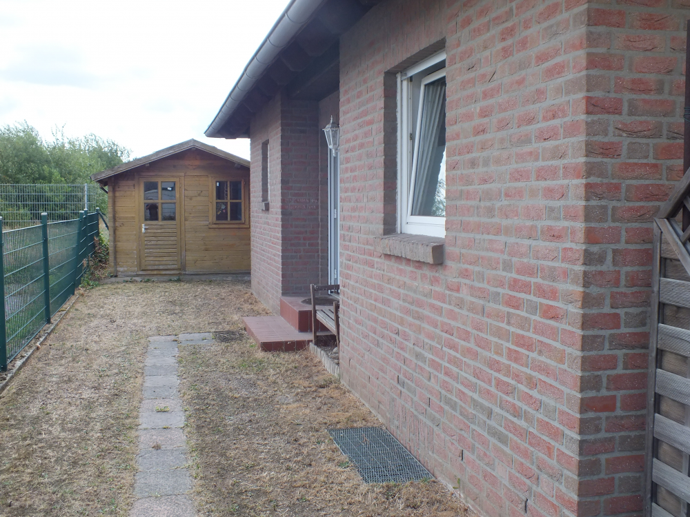 Das unterkellerte Wohnhaus bietet auf Erdgeschossebene eine Diele von welcher alle Räume begehbar sind, eine Küche, Gäste-WC, Gästezimmer sowie einen großen Wohn- und Essraum mit Anschluss auf die Terrasse. Im Wohnzimmer ist ein Kamin vorhanden. Im wohnlich ausgebauten Obergeschoss stehen zwei große Schlafräume und das Tageslichtbad mit Badewanne und Dusche zur Verfügung. Im Flur des Obergeschosses wurde praktischerweise ein zweiter Kamin installiert. Das Untergeschoss verfügt über eine Waschküche, einen Vorratsraum und einen weiteren großen Raum mit einer weiteren Nutzfläche von ca. 92 m². Der Kellerbereich ist gänzlich gefliest. Eine Gaszentralheizung ist vorhanden. Zur Gartenbewässerung steht ein Gartenbrunnen (18 m tief) zur Verfügung. Der Hauszugang befindet sich an dem rückliegenden Teil des Grundstückes.