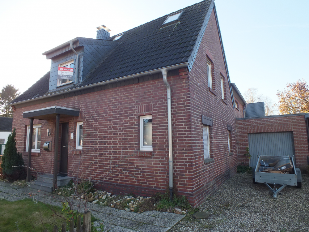 Dieses freistehende, unterkellerte Einfamilienhaus wurde ursprünglich im Jahr 1939 auf einem 676 m² großen Grundstück erbaut. Im Jahr 1963 wurde eine Erweiterung der Wohnfläche Erd-/Obergeschoss vorgenommen und im Jahr 1970 wurde eine Doppelgarage am Haus errichtet. Des weiteren steht ein separater PKW-Stellplatz zur Verfügung. Das Grundstück ist mit einem Doppelstabmattenzaun eingefriedet. Der Garten hat Süd-/Westausrichtung und ist pflegeleicht angelegt. Rund um das Haus wurde gepflastert. Es steht ein Geräteschuppen, eine überdachte Terrasse sowie ein Brunnen zur Gartenbewässerung zur Verfügung.
