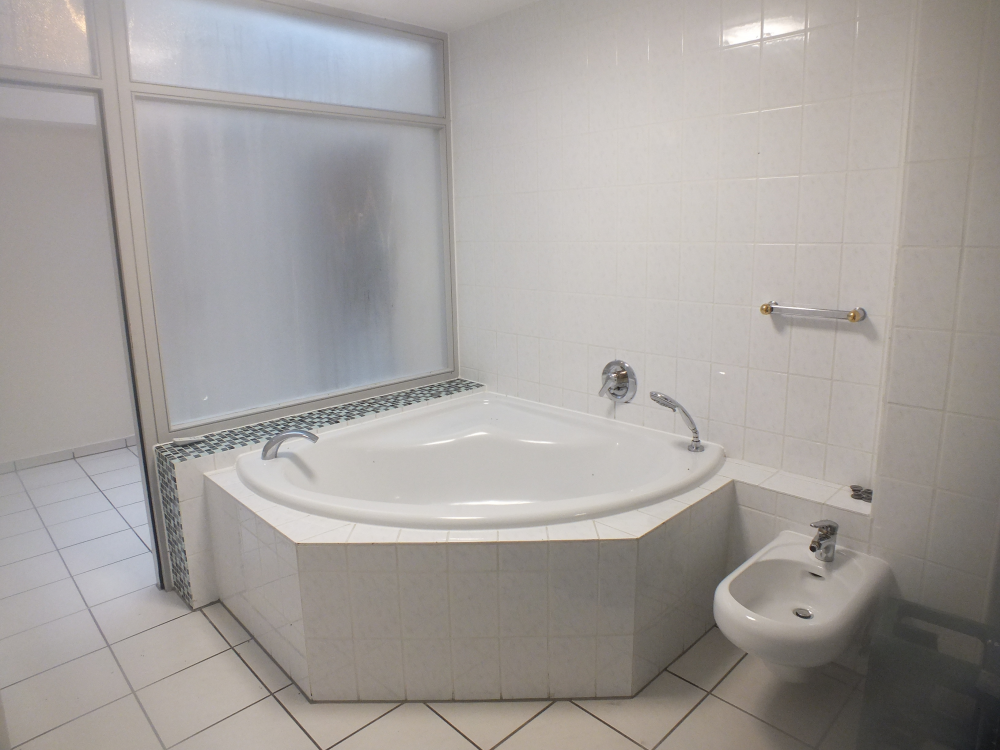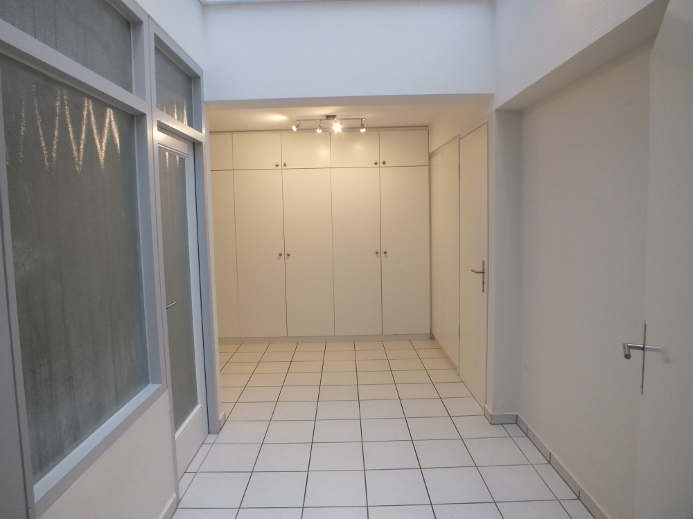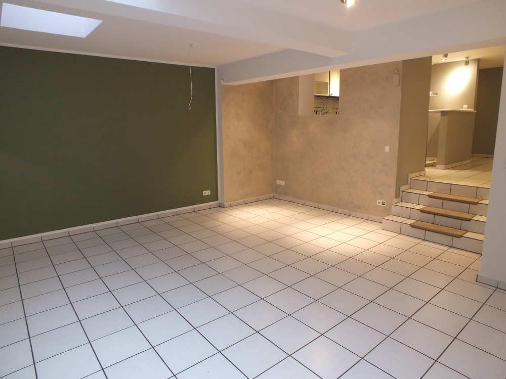 Zur Wohnung gehört eine Garage, welche alternativ zum Hauseingang, die zweite Wohnungseingangsmöglichkeit bietet. Der Grundriss ist offen gestaltet. Im oberen Bereich befindet sich die Diele, ein Abstellraum, das Gäste-WC und die Küche. Die vorhandene Einrichtung kann übernommen werden. Über vier Stufen betreten Sie das große Wohn- und Esszimmer mit einem abgeteilten Raum, nutzbar als Bibliothek, Büro, Ankleide, Hobbyraum etc. Der separierte Schlafbereich beherbergt einen Flur, welcher mit reichlich Einbauschränken ausgestattet ist, ein Schlafzimmer mit bodentiefem Fenster sowie das Badezimmer. Im Badezimmer erwartet Sie eine Dreiecksbadewanne, eine ebenerdige Dusche, Handwaschbecken sowie ein separiertes WC.