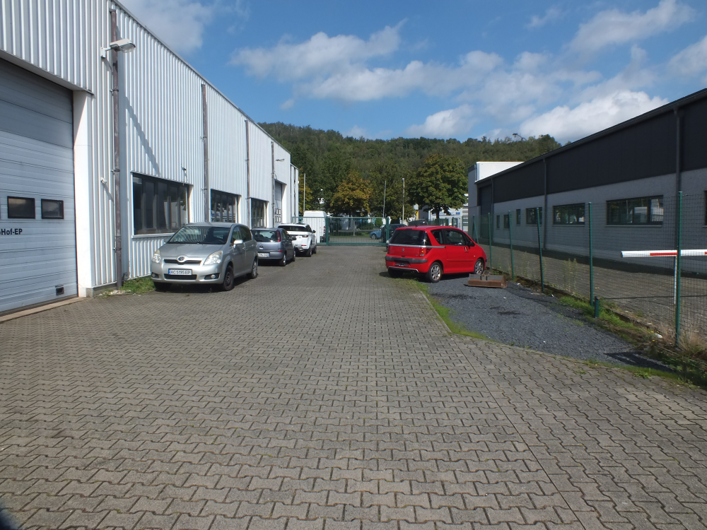 Die Werkshalle bietet eine Gesamtgröße von 588 m², aktuell auf zwei Mieter aufgeteilt. Es stehen vier Hallentore zur Verfügung. Beim Bodenbelag handelt es sich um Betonplatten. Die Deckenhöhe liegt bei 6,50m.