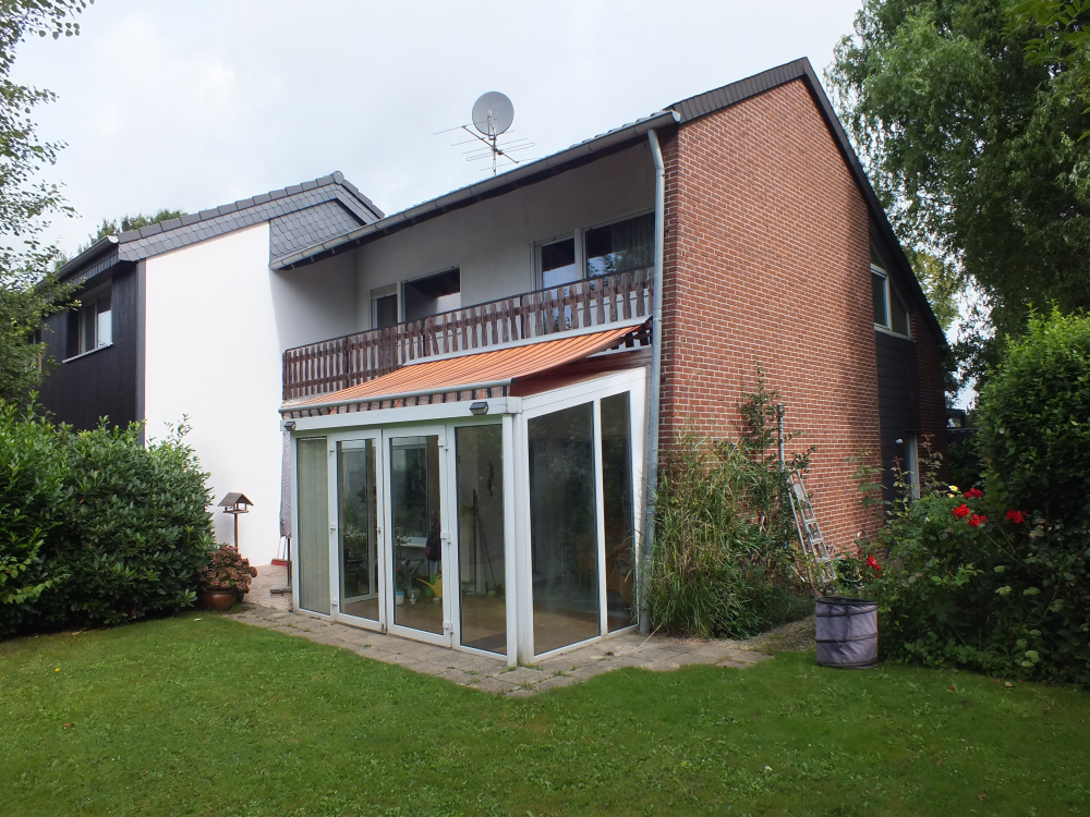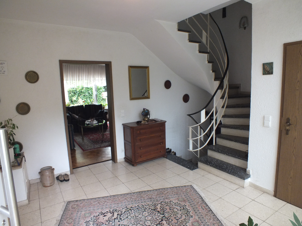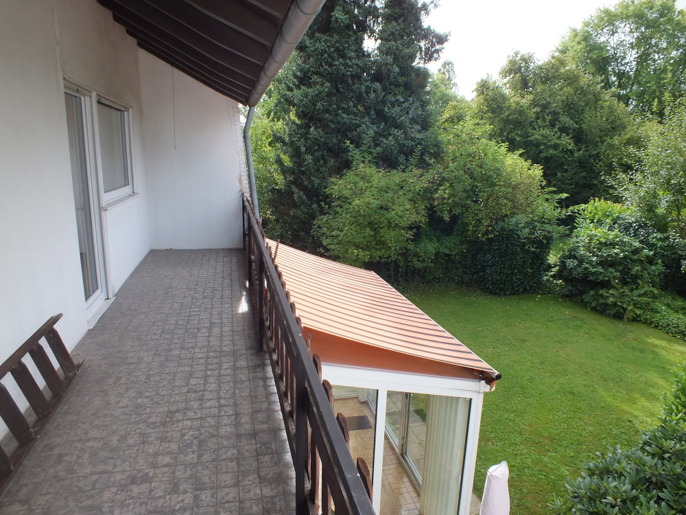 Das Haus ist unterkellert und bietet im Erd- und Obergeschoss eine Wohnfläche von ca. 130 qm, verteilt auf 4 Zimmer, Küche, großzügige Diele, Gäste-WC und ein Wannenbad mit Fenster im Obergeschoss. Vom geräumigen Wohn- und Esszimmer ist der Wintergarten begehbar. Der Garten bietet eine kleine Sonnenterrasse, eine Wiesenfläche sowie teils alten Baumbestand. Es steht ein Gartenhaus zur Verfügung. Im Obergeschoss befinden sich 3 Zimmer und ein Badezimmer. Die Loggia ( 8,45m x 1,50m ) ist von zwei Zimmern aus zugänglich und bietet einen herrlichen Blick ins Grüne. Die Fensterfronten auf der Hausrückseite des Obergeschosses wurden zuletzt im Jahr 2022 inkl. der Rolläden erneuert. Ebenfalls wurden die Regenrinnen erneuert.