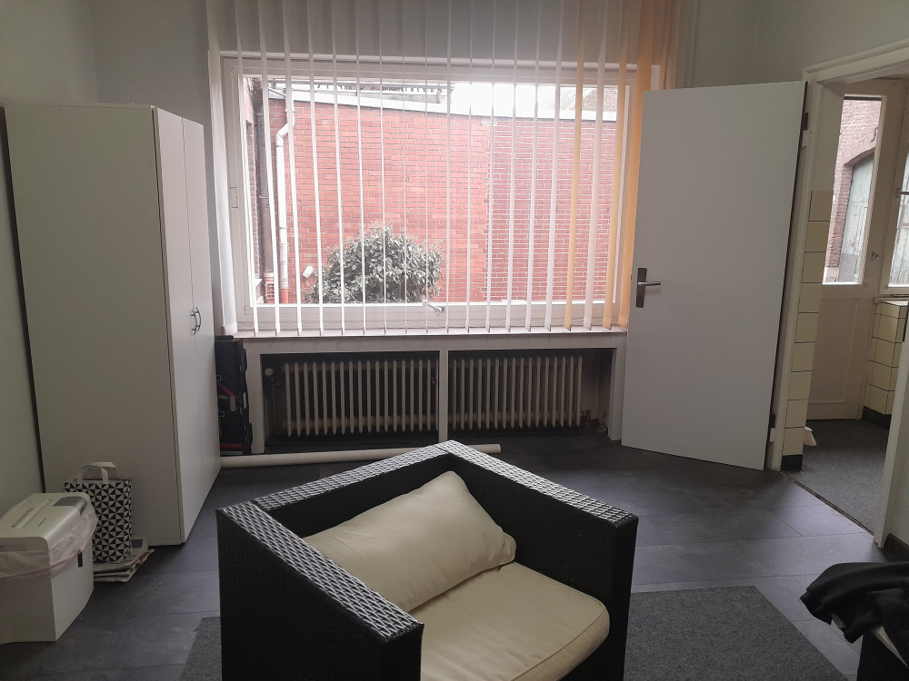 Es steht ein großer Raum mit ca. 65 m² Fläche zur Verfügung. Über einen Flur erreicht man das WC mit Handwaschbecken und Einbauschrank sowie einen rückliegenden Raum, der ideal als weiteres Büro/Lager etc. genutzt werden kann. Von hier betritt man die Teeküche, welche einen Ausgang auf den Innenhof bereithält.