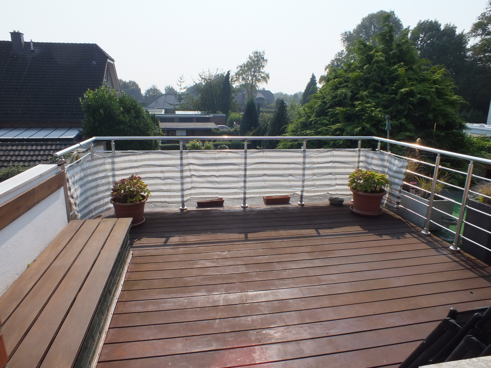 Terrasse 1. OG = 19,08 m² (insgesamt 25,44 m², 1/4 Anteil fällt unter die Wohnfläche)