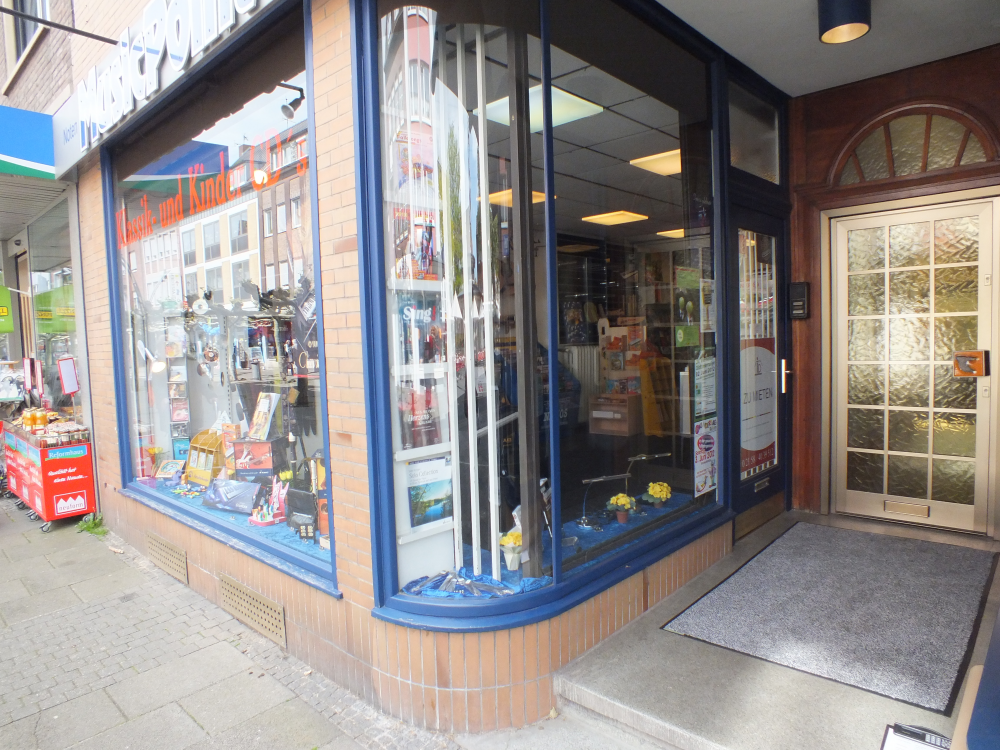 Schaufenster mit Rundbogen! Das vordere Schaufenster ist 4 m breit, hinzu kommt die Fensterfront Richtung Eingang. Sicherungsgitter im Eingangs- und Schaufensterbereich bieten Schutz. Innen- und Außenbeleuchtung praktischerweise mit Zeitschaltuhr, Internet- und Telefonanschluss ist vorhanden. Im Innenhof steht ein WC zur Verfügung. Insgesamt vermittelt das Ladenlokal einen nostalgischen Charme.