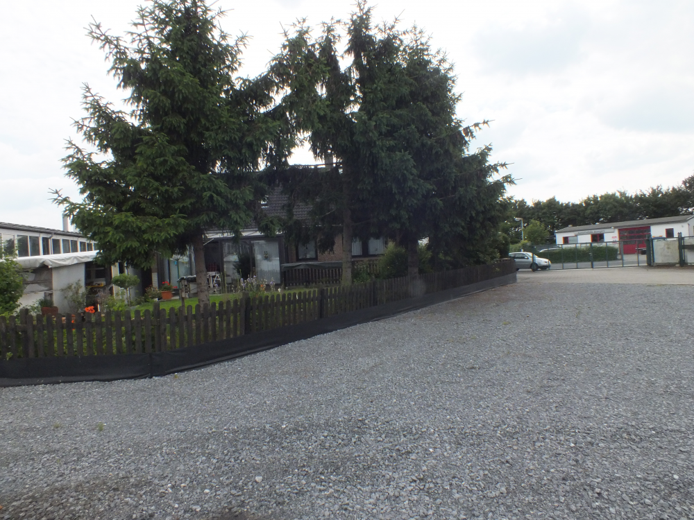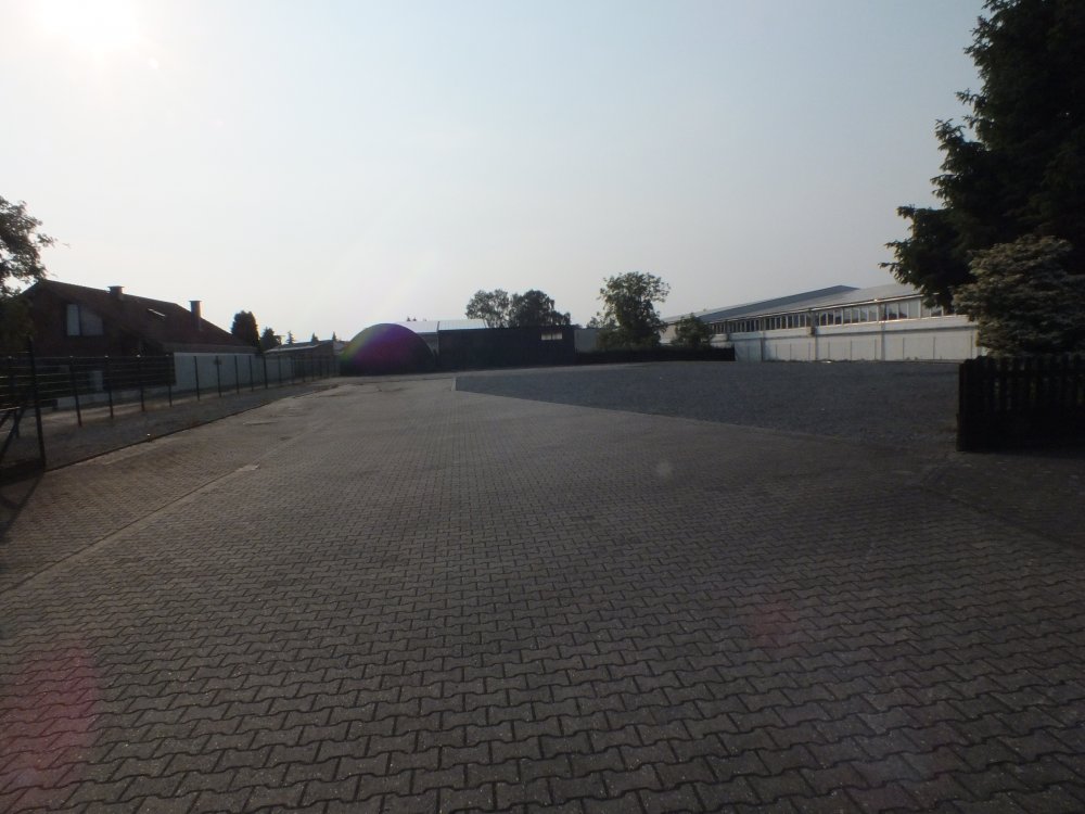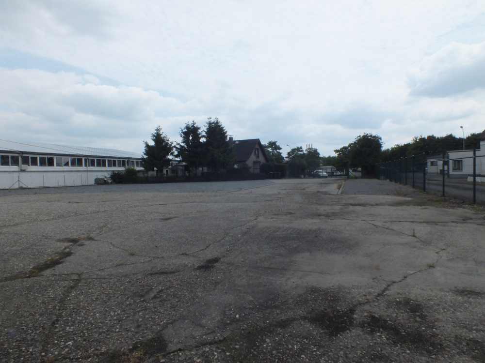 Das Betriebsgelände wurde bis dato für Lagerzwecke genutzt. Vormals war hier eine Spedition tätig, die Wohnen und Arbeiten praktischerweise auf dem Grundstück kombiniert hatte. Von der Strasse aus ist das Betriebsgelände nicht direkt einsehbar.