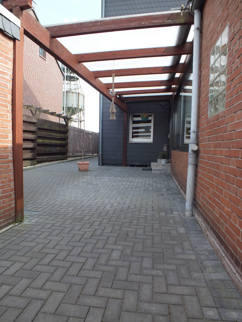 Geräteschuppen, eine überdachte Terrasse mit