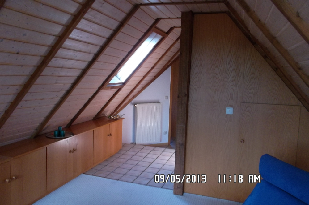 Diese aussergewöhnliche Dachgeschosswohnung mit vielen Schrägen wirkt viel grösser als die berechnete 39 m² Wohnfläche vermuten lassen. Die Grundfläche von ca. 60 m² ist komplett gefliest und bereits mit Einbauschränken im Wohn- und Schlafbereich ausgestattet. Teppichauslegeware im Wohn- und Schlafzimmer kann auf Wunsch kostenlos übernommen werden.